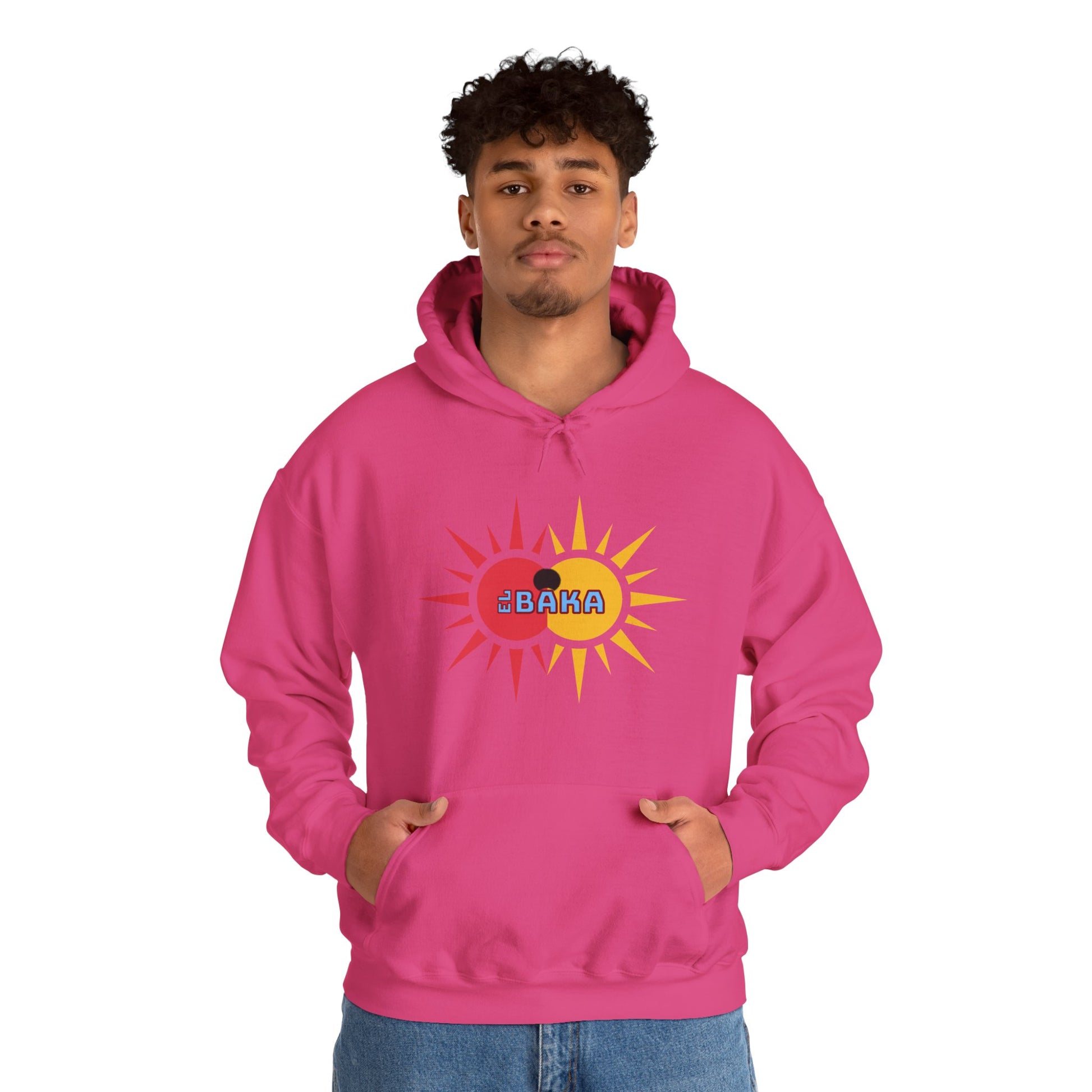 This cozy El BaKA RaEdOrIBaKa Phoenix Hooded sweatshirt carries a bold, mythic energy—soft to the touch, built for layering, and printed with a fiery phoenix motif that says resilience without shouting. The front features El BaKa twin Saon Logo; the back erupts with a painterly phoenix rising from a sun-like disk, rendered in warm reds and golds. Wear it on cool mornings while heading to a studio session, at night around a city bonfire, or when you need a tactile reminder of starting anew. The roomy kangaroo pocket and double-lined, color-matched hood keep hands and head sheltered. Subtle details like tear-away neck labels and a classic, comfortable fit make it feel lived-in from the first wear. This sweatshirt blends artistic flair with everyday comfort for anyone who wants to carry a small, wearable story of rebirth.